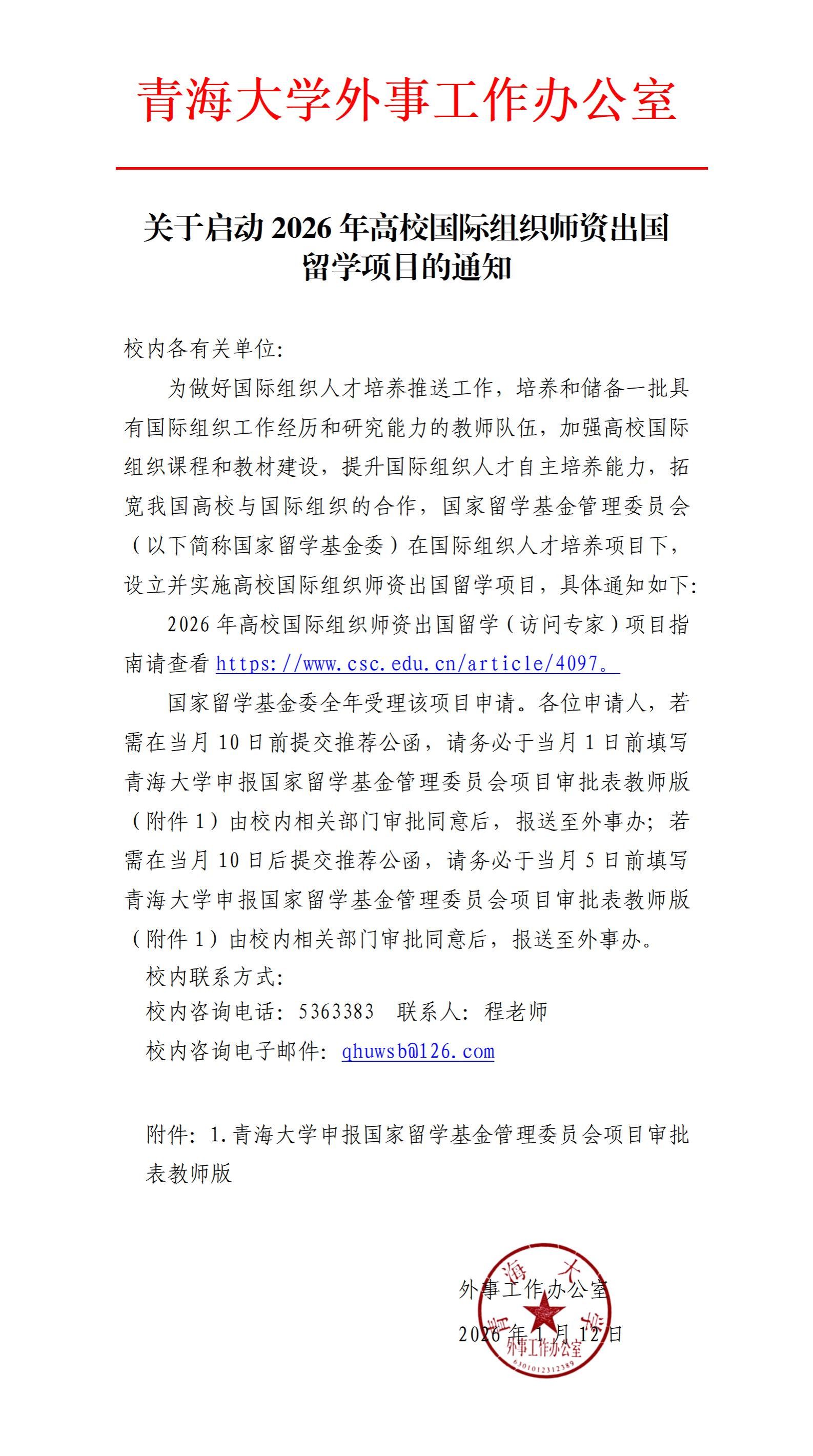 关于启动2026年高校国际组织师资出国 留学项目的通知