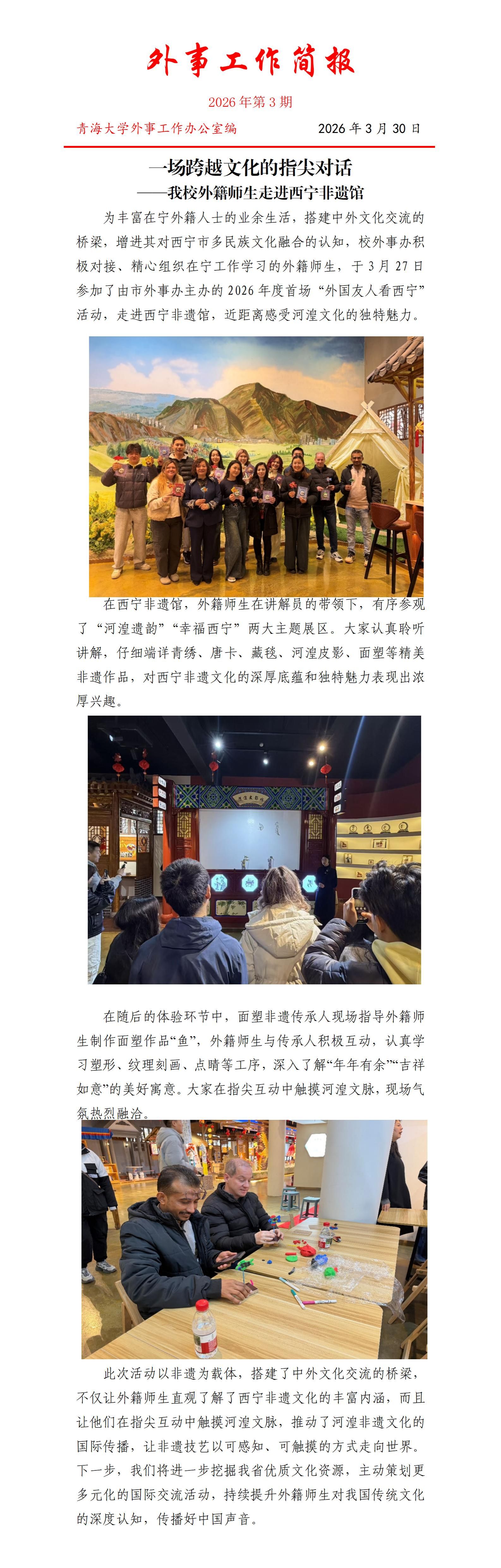 一场跨越文化的指尖对话 ——我校外籍师生走进西宁非遗馆