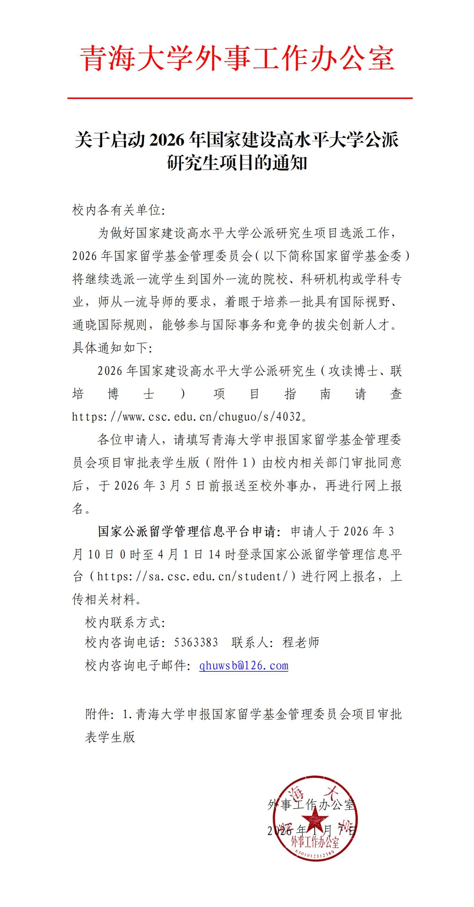 2026年国家建设高水平大学公派研究生(攻读博士、联培博士)项目指南请查:https://www.csc.edu.cn/chuguo/s/4032