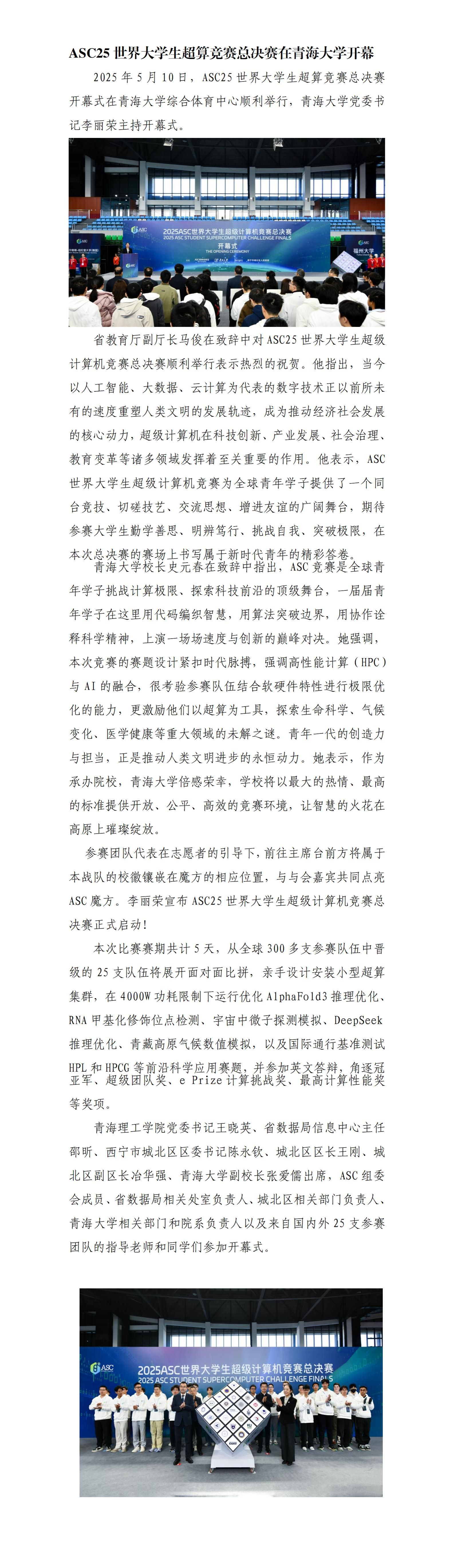 ASC25世界大学生超算竞赛总决赛在青海大学开幕